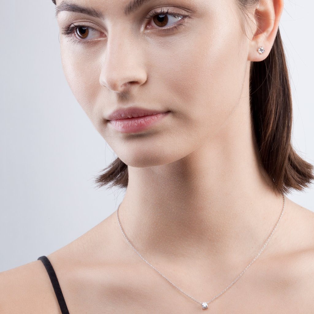 - Delikatny wisiorek symbolizujący doskonałość, niezawodność i bezpieczeństwo Idealne połączenie 18-karatowego białego złota i diamentu lab-grown